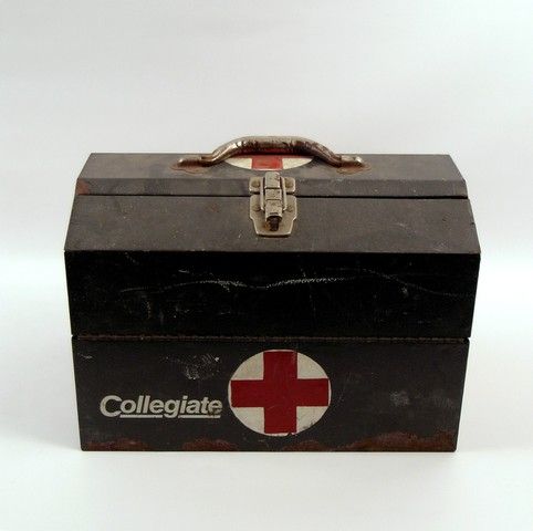 Green metal 'Collegiate' medical case with handle on the top and latch. (approx. 15" x 11"). Item requires additional shipping charges.