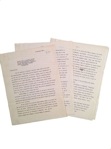 Original excerpt from a projected article for Collier's Magazine with Howard Hughes handwritten revisions dated 8 February 1950 (4 pages total). The excerpt was based on leading industrialists, industrial families and public spirited millionaires. Includes a copy of the letter of provenance which is a letter to a Karen from a writer and Howard Hughes obsessionist named Arelo who gifted her a collection of photos and autographs of Howard Hughes based on her interest in collecting.