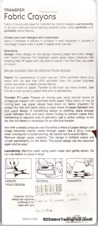 8 pack of brilliant colors transfer fabric crayons by Collins SRP $5.69