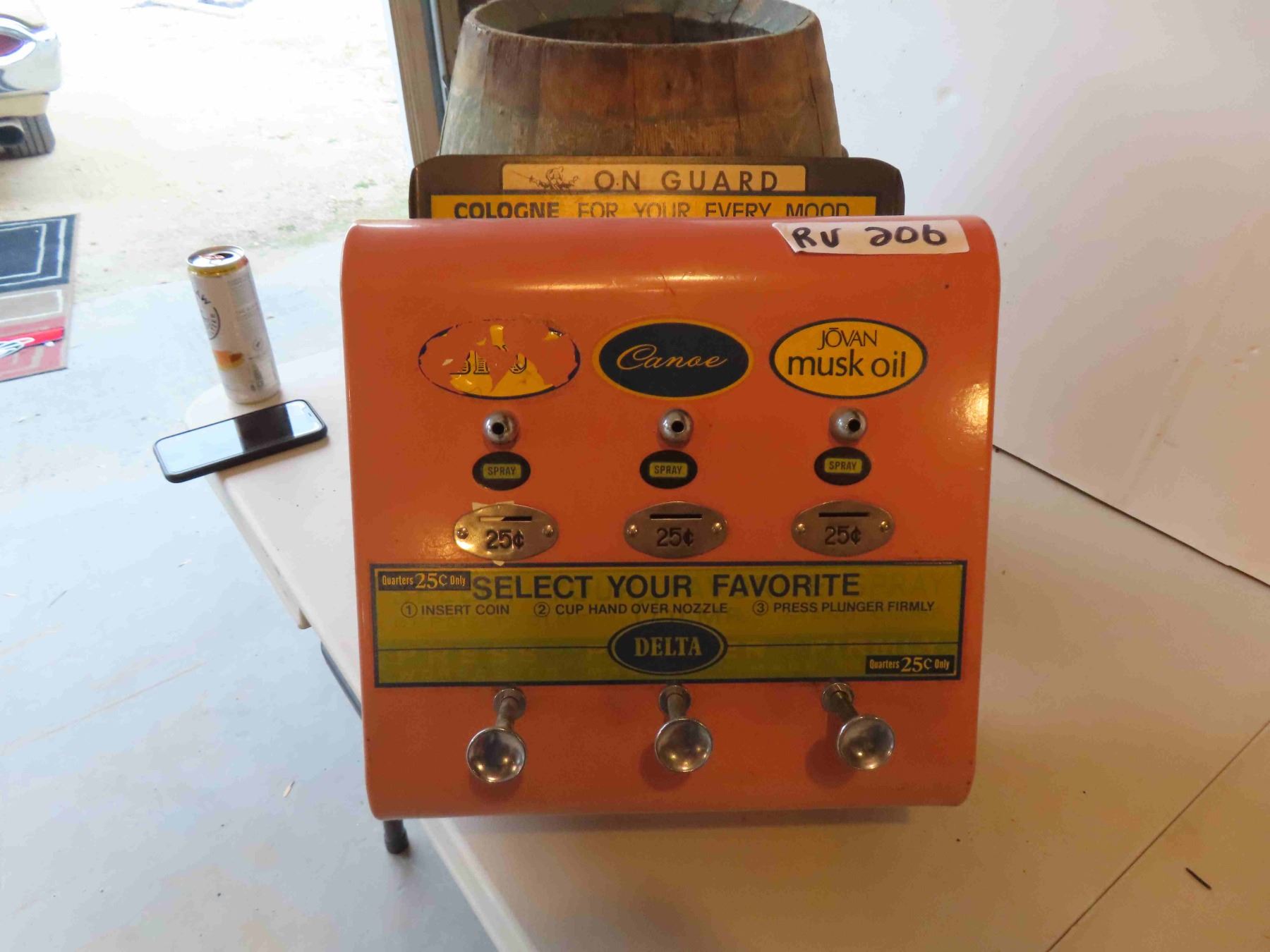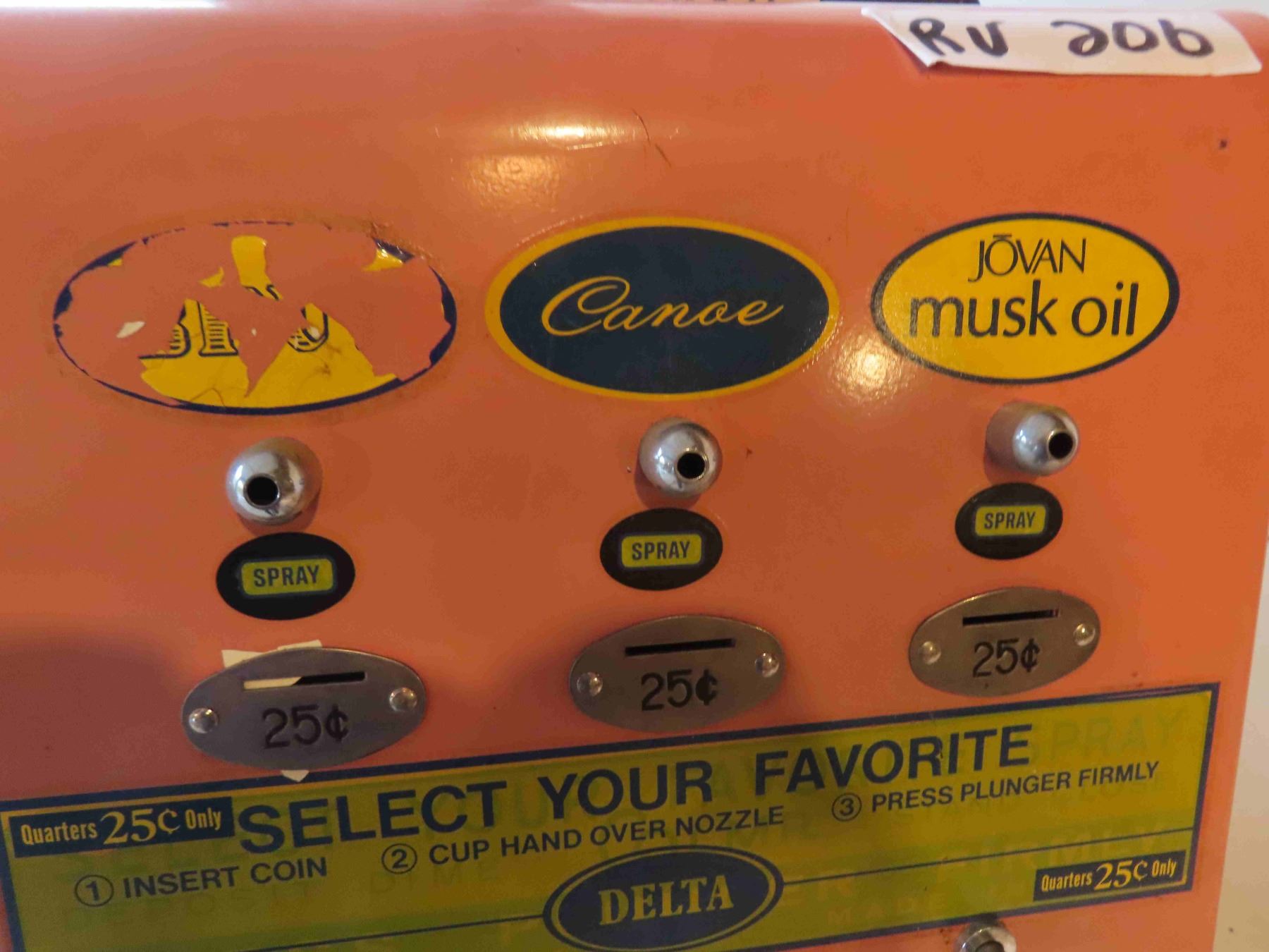 Cologne Coin Operated Dispenser ' Brute , Canoe , Musk ' 14'' x
