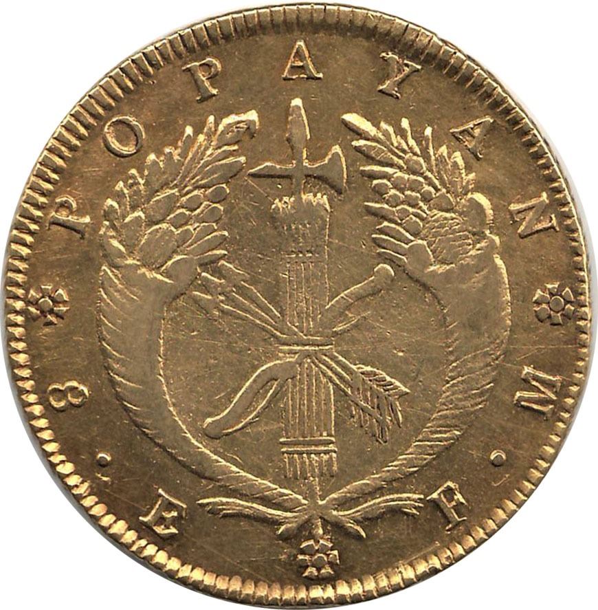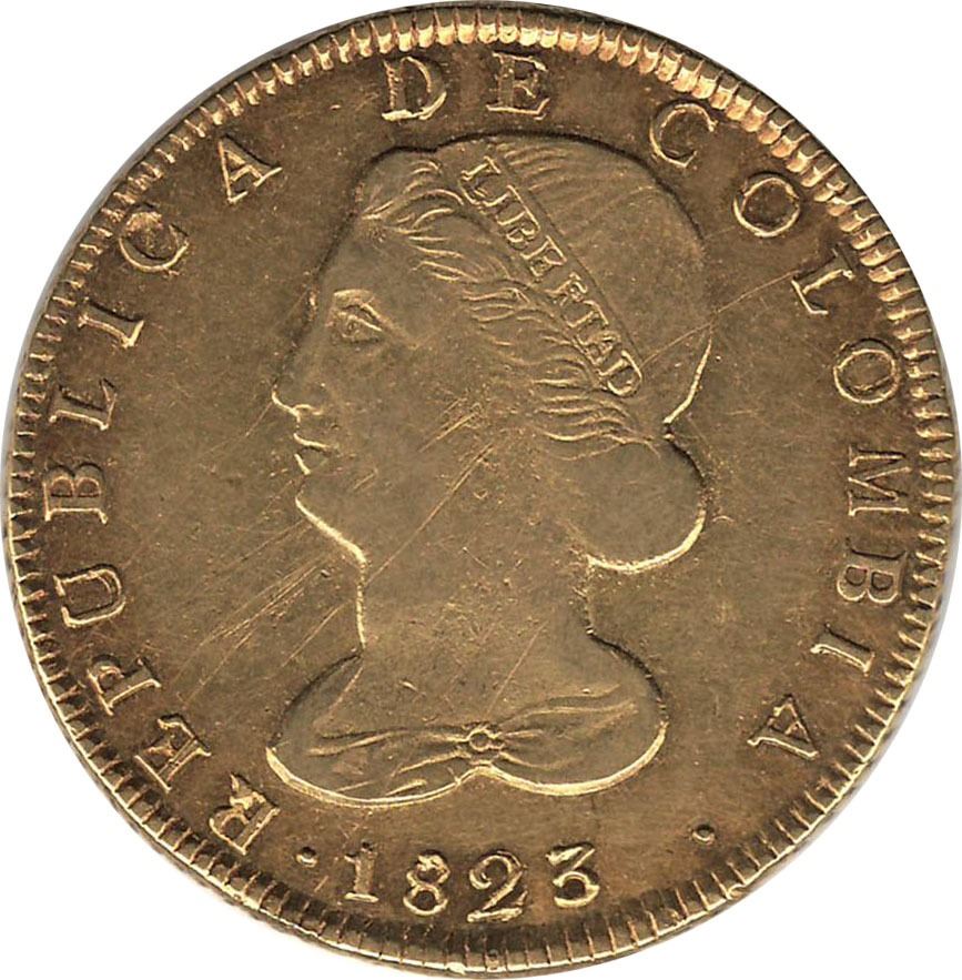 Colombia 1823 FM Gold 8 Escudos. .7616 oz. AGW. Scratches.
