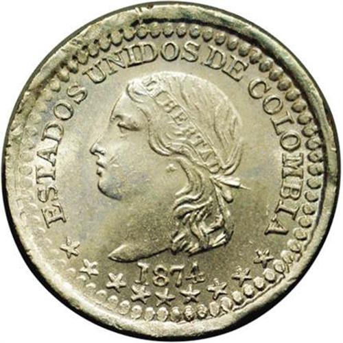 Colombia 5 Centavos 1874 Bogota, KM170, MS64 NGC, incre Colombia 5 Centavos 1874 Bogota,