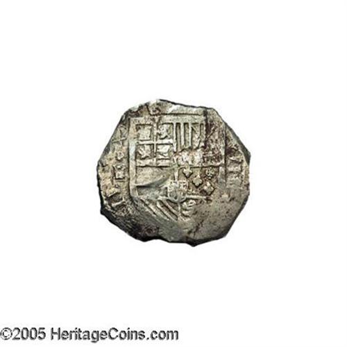 <B>Felipe IV 8 Reales ND, </B></I>KM3.4, Cartagena Mint, assayer is present but may be P or E (1625-1635.) The shield is crude but virtually fully visible with VIII to the right, and the reverse features a virtually full cross and some peripheral legends (HISPANI...). The overall grade is VF and this is not a sea salvage piece. Rare and always in demand!