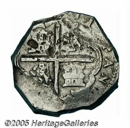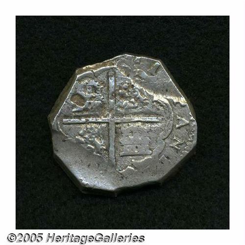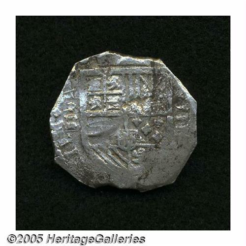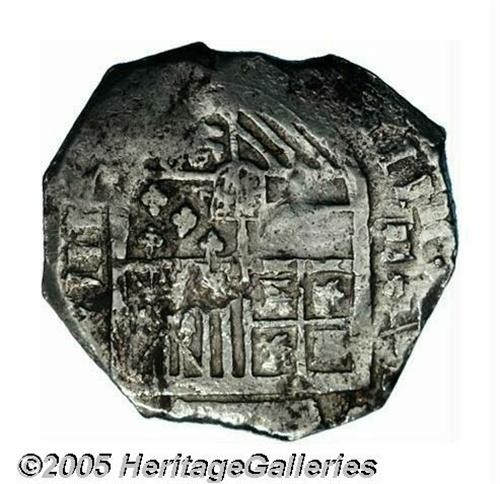<B>Felipe IV 8 Reales ND, </B></I>KM3.4, Cartagena Mint, assayer is present but may be P or E (1625-1635.) The shield is crude but virtually fully visible with VIII to the right, and the reverse features a virtually full cross and some peripheral legends (HISPANI...). The overall grade is VF and this is not a sea salvage piece. Rare and always in demand!