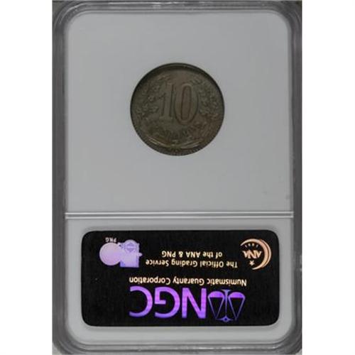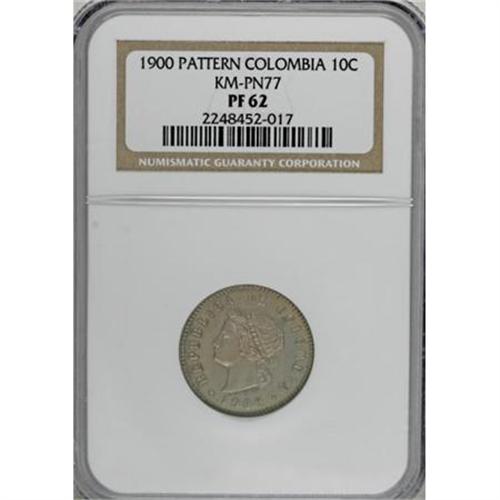 <B>Republic Pattern 10 Centavos 1900,</B></I> KM-Pn77, Proof 62 NGC, lightly toned, copper-nickel, reverse without quatrefoil, very scarce.<BR><BR><b>Shipping:</b> Coins & Currency (<a target="_blank" href="http://www.heritageauctions.com/common/shipping.php">view shipping information</a>)