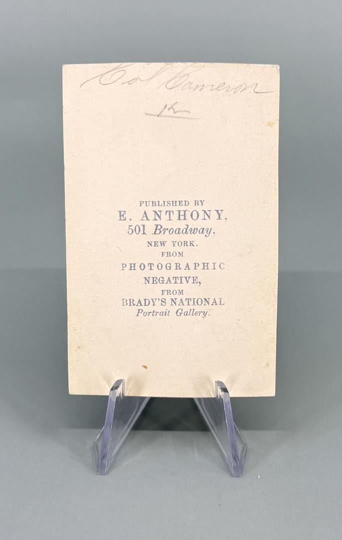 Published by E. Anthony from Brady's National Portrait Gallery. James Cameron (March 1800 – July 1861) was a Pennsylvanian who served as colonel of the 79th New York Volunteer Infantry Regiment of the Union Army during the early days of the American Civil War. He was the brother of Simon Cameron, United States Senator and first United States Secretary of War in the cabinet of President Abraham Lincoln. At the age of 61, James Cameron was killed in action at the First Battle of Bull Run, the first large battle of the war, on July 21, 1861.