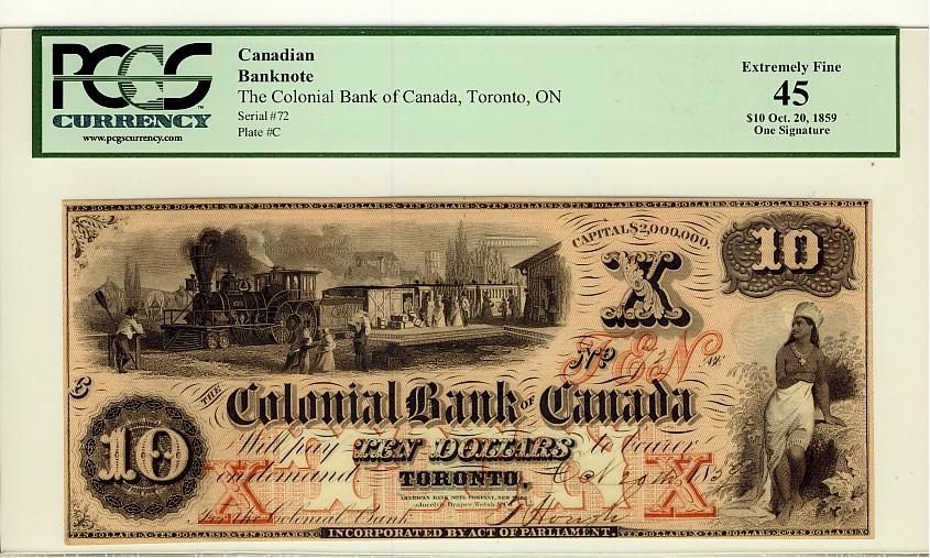 Colonial Bank of Canada, 1859 $10 #72, CH-130-10-04-12, PCGS EF45