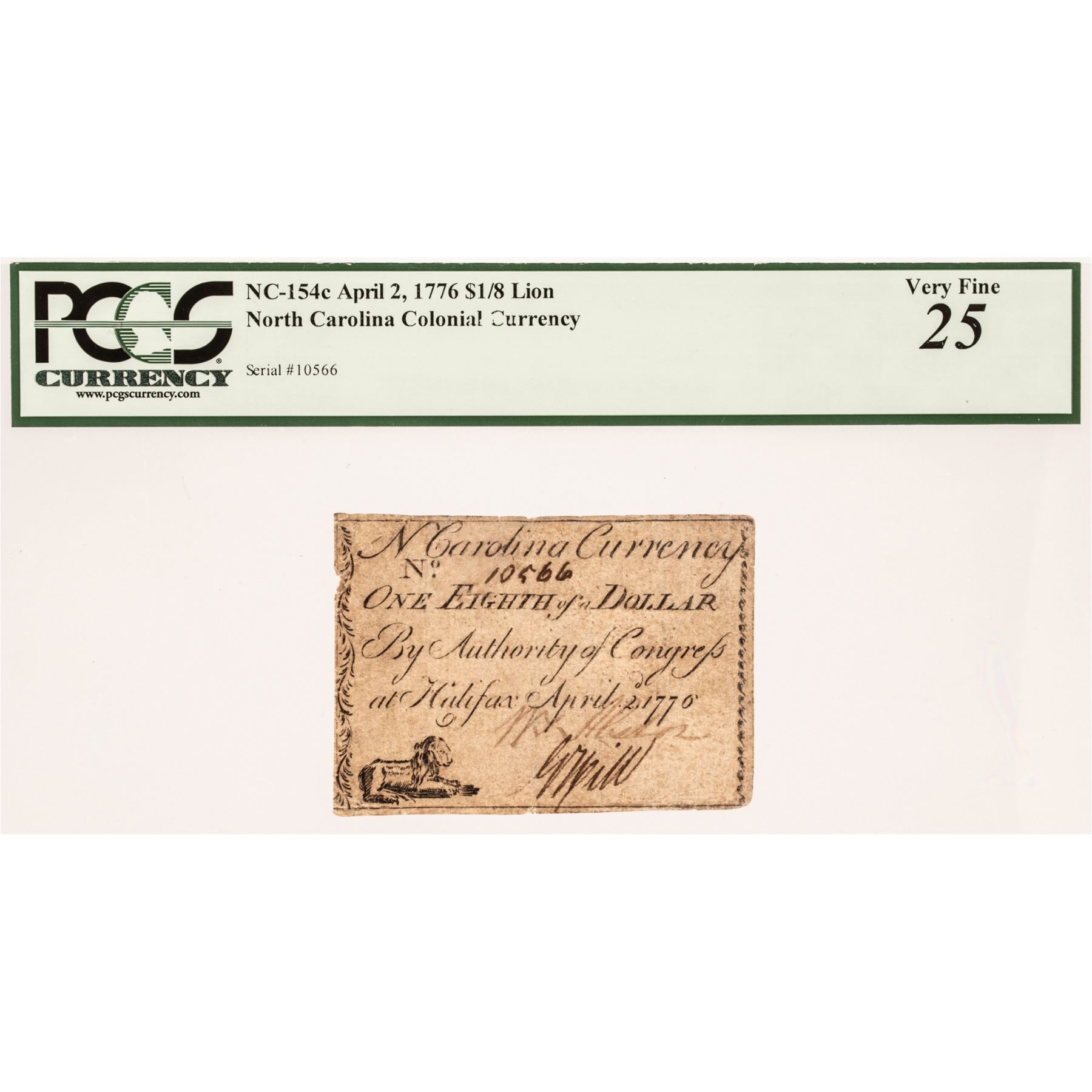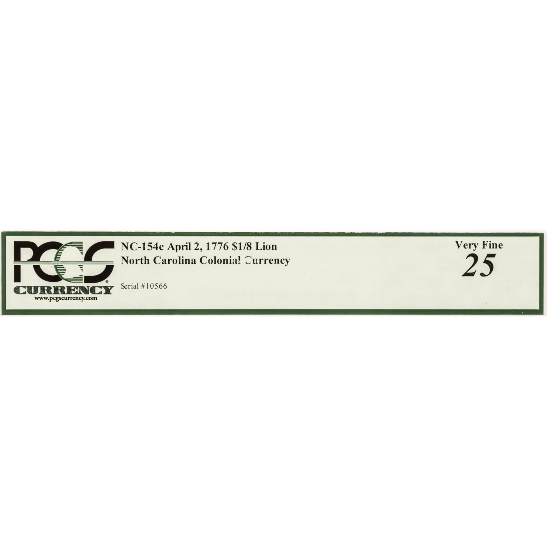 Colonial Currency, April 2, 1776, North Carolina, $1/8 Lion Vignette, PCGS VF-25