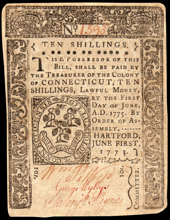 Rare “No Cancel” June 1, 1773 Connecticut Ten Shillings