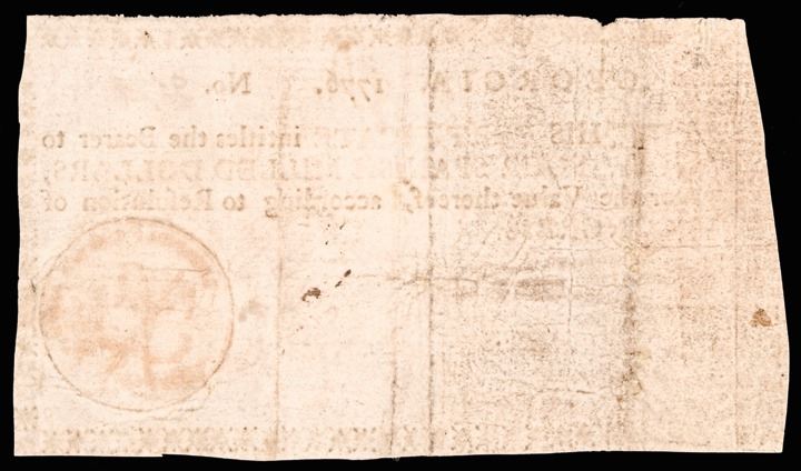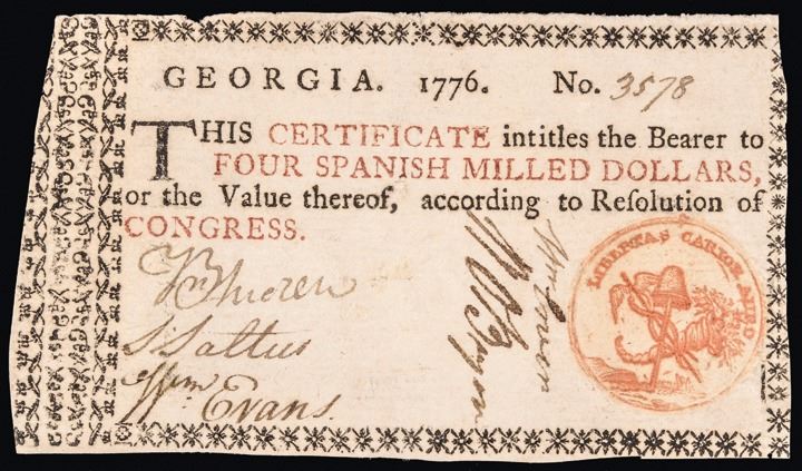 1776 Georgia Four Dollars “Liberty Cap” Orange Seal Note