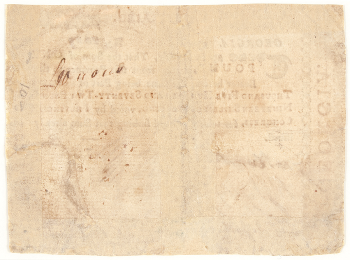 The production method in 1776 for any note of two colors meant extra work for the printer. Each sheet had to be placed onto the printing press twice, one time to print the red text and a second pass to add the black. Each time a color was printed, the paper sheet had to be hung up to dry for a day and then laid back down, hopefully in the same exact place as proper alignment was critical, to add the second color. Obviously, this was a far more timely procedure that added extra work and cost. That is a major reason we see so few Colonial issues that are multicolor.