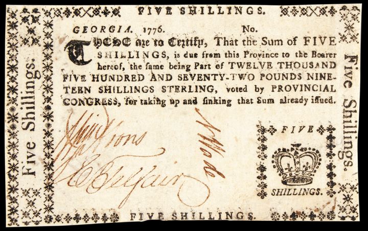 Bold & Vivid 1776 Georgia Five Shillings “Crown” Note