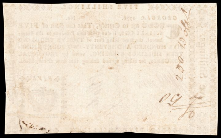 Colonial Currency, Georgia. 1776 Sterling Denominations. Five Shillings. Crown