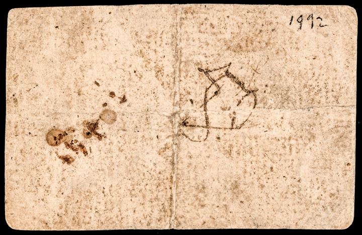 Fr. MA-196. Well centered with large margins, signature of “D. Hopkins.” Holder states Net graded noting rust. A scarce 1776 Revolutionary War period small size typeset pence denomination.