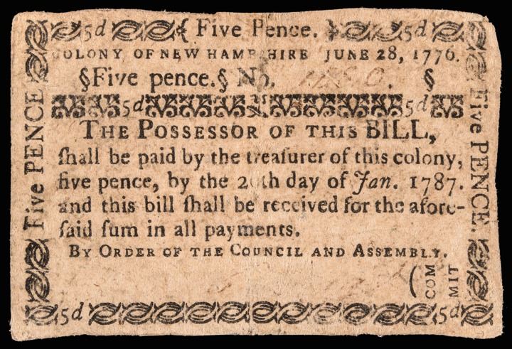 Rare New Hampshire June 28, 1776 Five Pence Note
