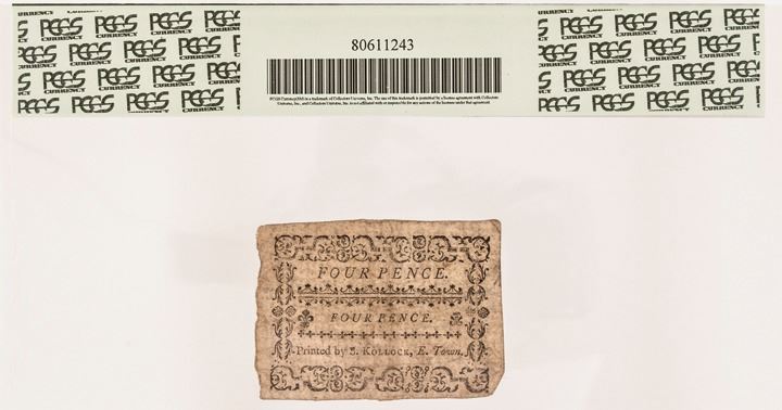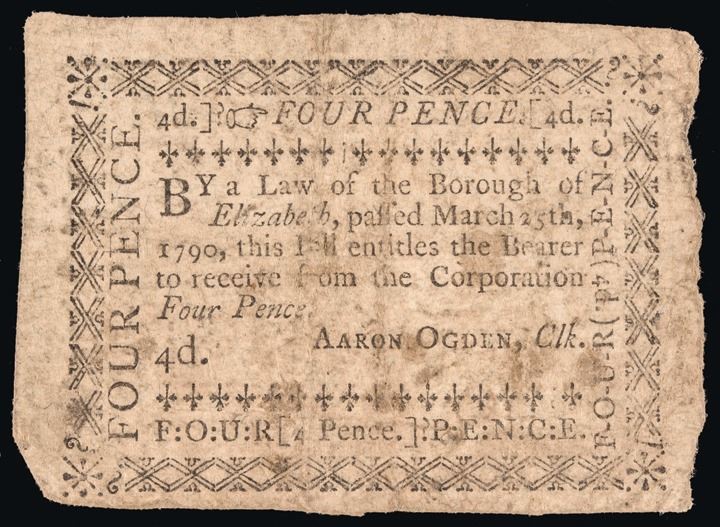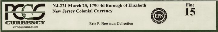 Colonial Currency, NJ. Borough of Elizabeth March 25, 1790 4 Pence PCGS Fine-15