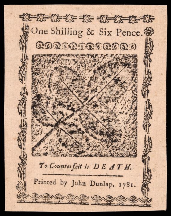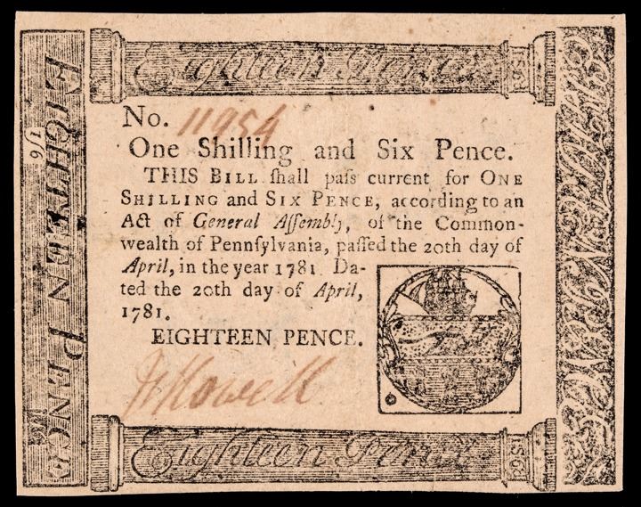Scarce Pennsylvania April 20, 1781 One Shilling Six Pence
