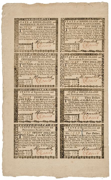 Gem Uncut Sheet 1780 “Guaranteed” Rhode Island Notes