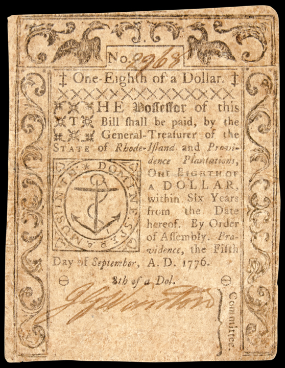 Colonial Currency, RI, Sept. 5 1776, $1/8