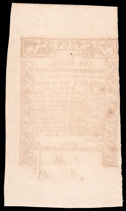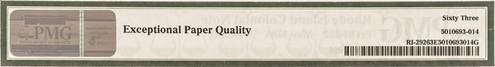 Fr. RI-292. This One Shilling note is deeply printed with sharp text and designs, retaining some original press text embossing within the fresh laid period paper. Red and brown ink signatures are fresh and vivid. A pretty note with excellent eye appeal. PMG holder states, “Exceptional Paper Quality.”