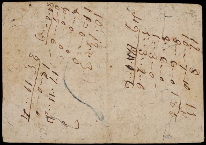 Fr. VA-122. This deep, bold black printed note is well centered within four large even margins. There is one vertical centerfold and the blank reverse side has a number of period notations. One Sixth of a Dollar is the lowest denomination of this issue. As such, it would have seen the most wear and circulation. This note is quite exceptional. It is certainly of Condition Census quality and to date, not a single example of this number has been graded by PMG.