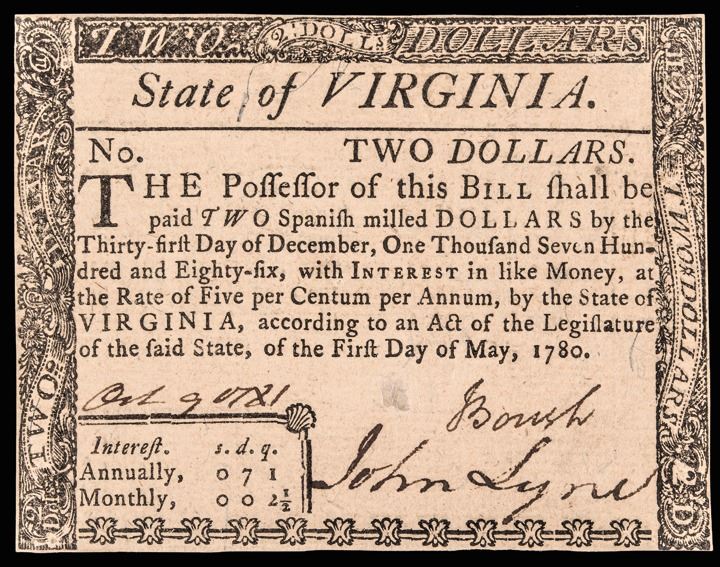 May 1, 1780 Virginia Two Dollars “Guaranteed” Note