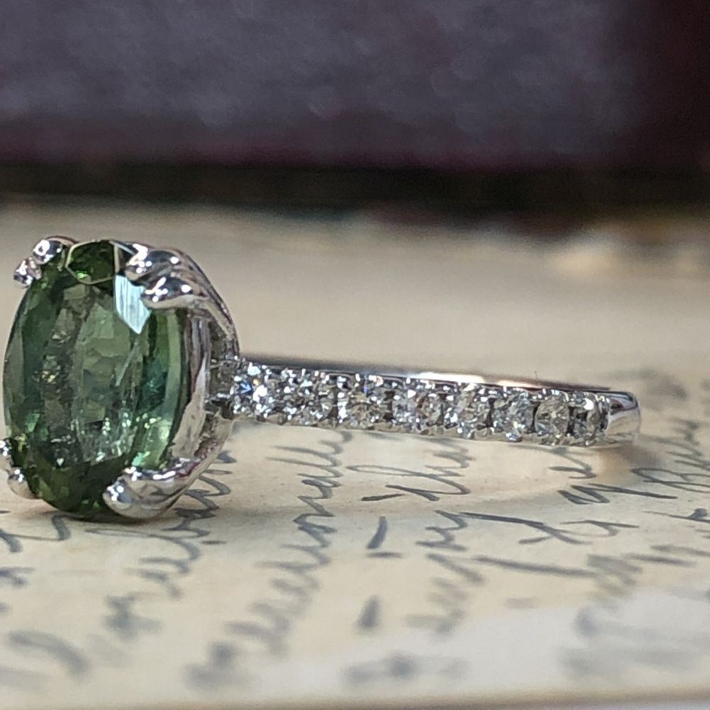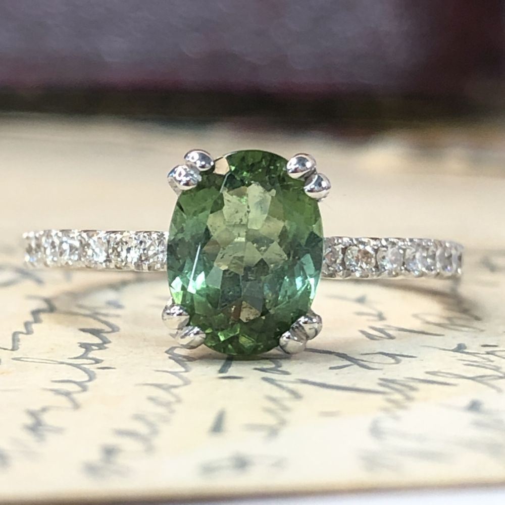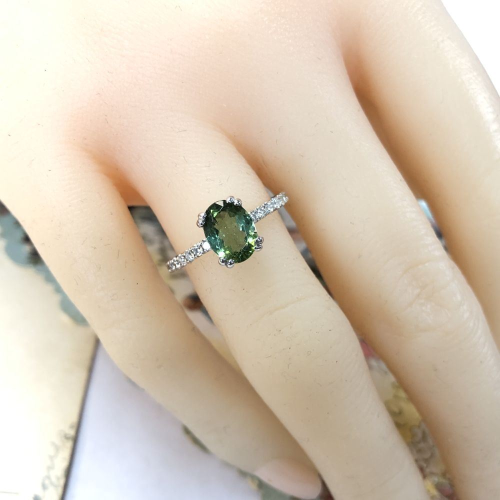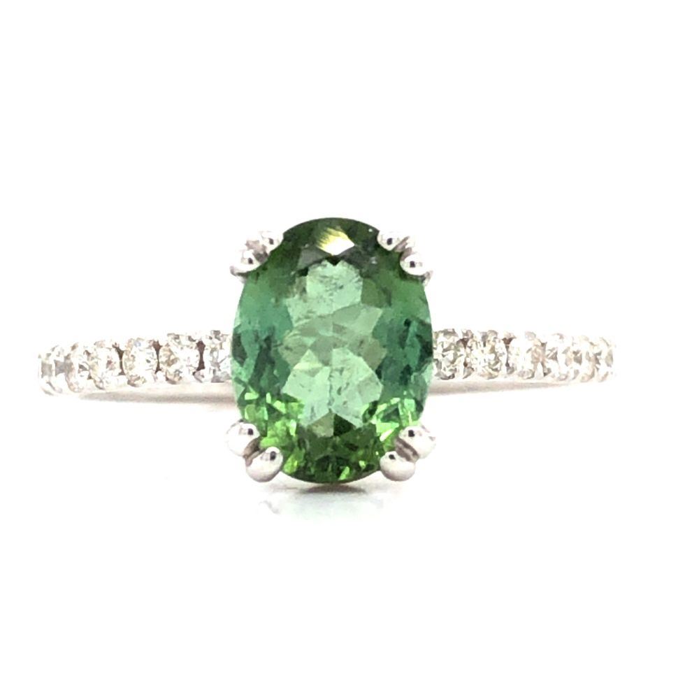 TITLE DESCRIPTION: Colonial Green Colored Tourmaline and Diamond Ring
