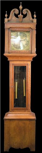 Colonial Oak Grandfather Clock c.1930 Two weight chain driven, strikes on the hour and half hour