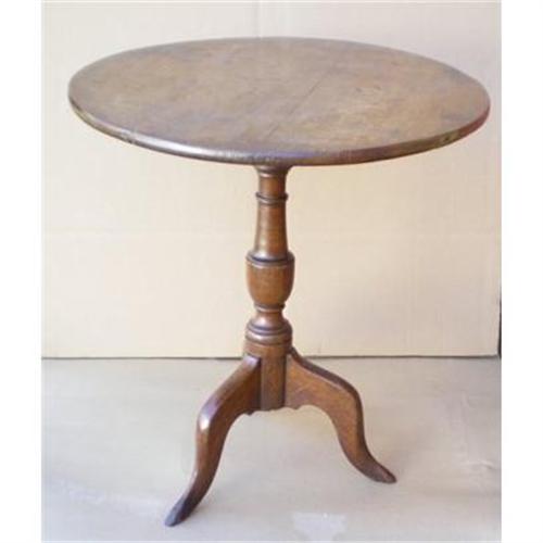 A genuine George III period country made oak tilt-top table, on gunbarrel column and splayed tripod feet, perfect for an uneven floor! </em></td>