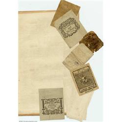 Colonial Reprints.<p>A sheet of June 20, 1775 New Hampshire notes, several individual earlier New Hampshire notes, two early Rhode Island notes and two more modern reproductions. Also included are an extremely low grade genuine early Delaware note and a French Assignat. 9 notes Important notice: We expect to be auctioning lots at the rate of 200-250 per hour. Sometimes eBay Premier live bid software cannot keep up with that pace, so we strongly recommend that you place a realistic proxy bid now as insurance to avoid disappointment. Also please note that all Heritage/CAA lots purchased through eBay Premier carry a 20% Buyer's Premium.