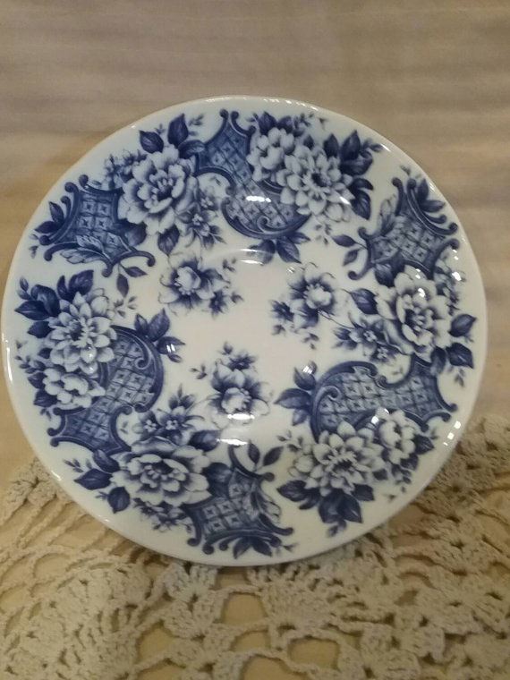 Colonial Roy Kirkham saucer fine bone china **|**|** Beautiful Colonial fine bone china blue and white saucer by Roy Kirkham. 6 1/2 " round, 1" deep. Made in England 1996. In great condition, stored in hutch.