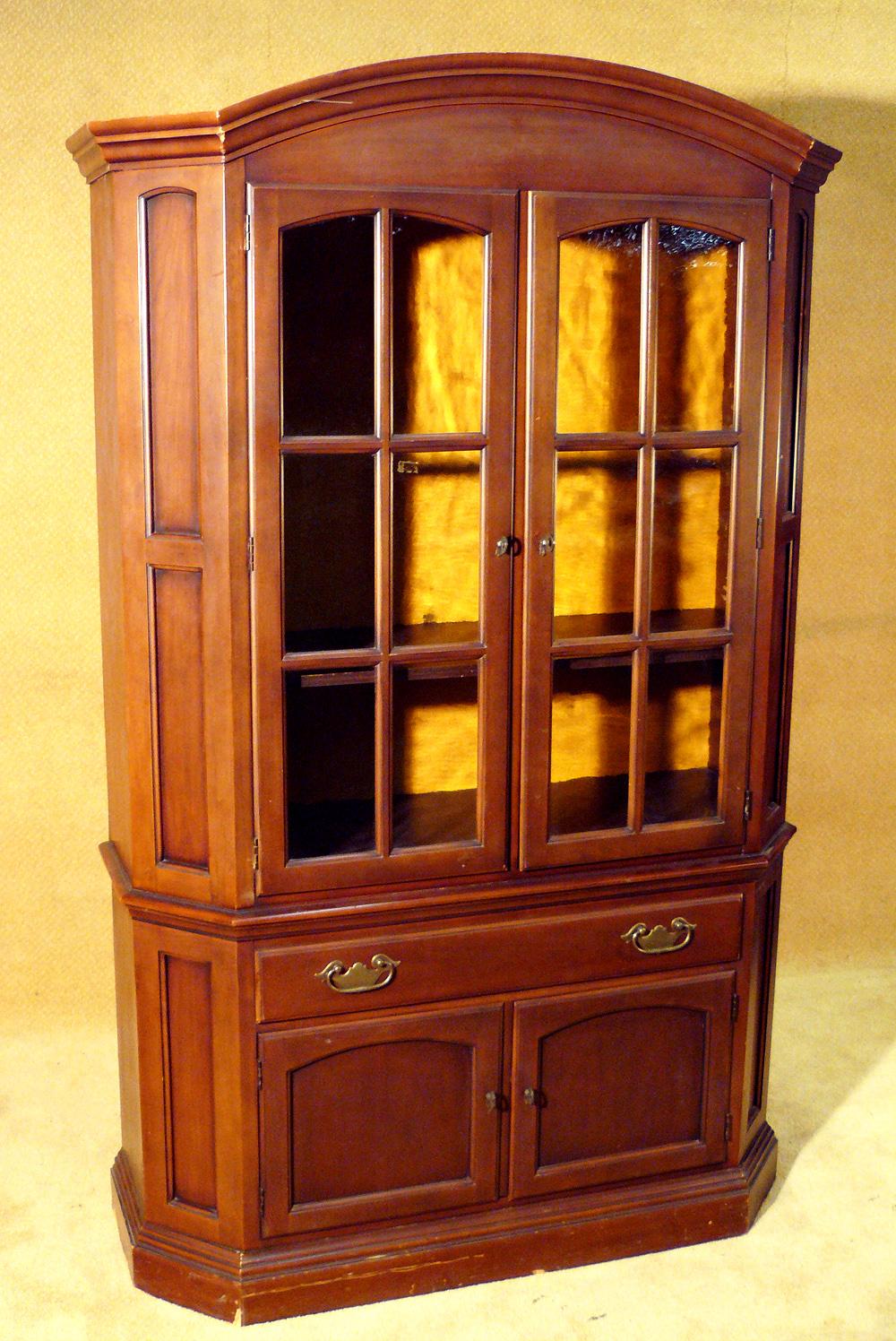 Vintage Colonial Style Cherry Stained China Cabinet with Glass Doors