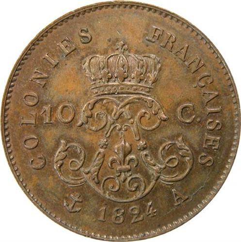 Colonies Franaises, 1824 10 Centimes Essai, Bronze, KM-E5, Very Choice Uncirculated. A very attractive glossy brown example