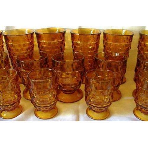 Made by Colony in the Whitehall Amber pattern, this set is in nearly new condition. No nicks, chips, cracks or scratches. Includes 7 tall iced tea, 6 water goblets and 5 juice.