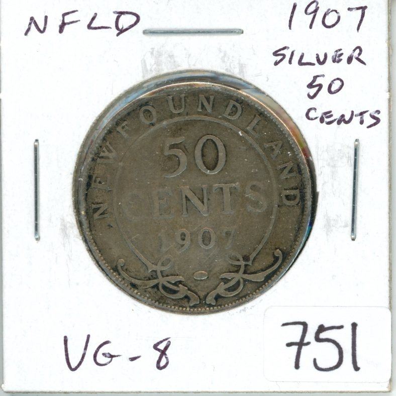 Colony of Newfoundland. 1907 Silver 50 Cents. VG-8.