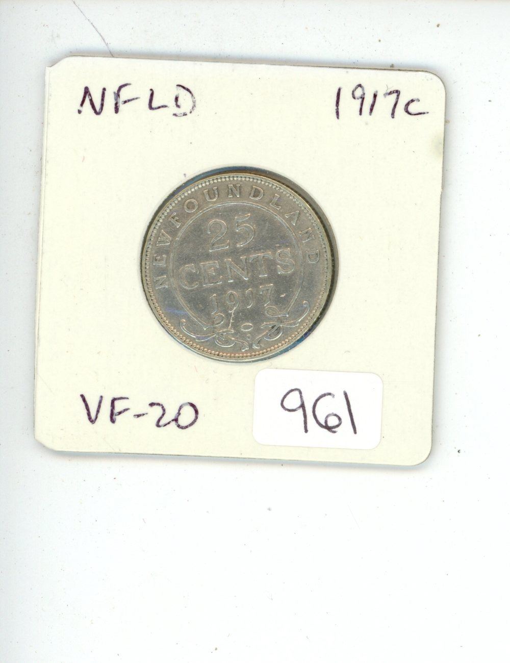 Colony of Newfoundland. 1917c Silver 25 Cents. The first 25 Cents issued, and the only one issued during World War I. VF-20.