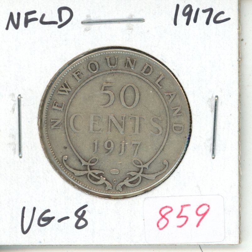 Colony of Newfoundland. 1917c Silver 50 Cents. Minted in Canada because of World War I. VG-8.
