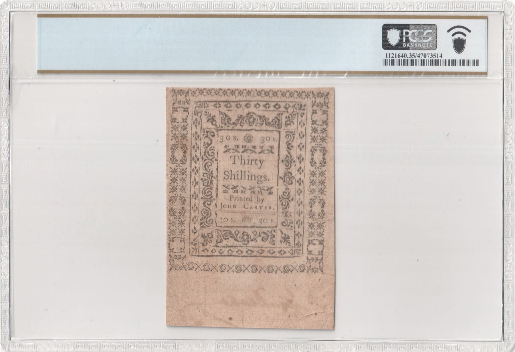 Colony of Rhode Island. East-Greenwich. March 18, 1776. Thirty Shillings. Fr. RI-238. PCGS Choice Ve