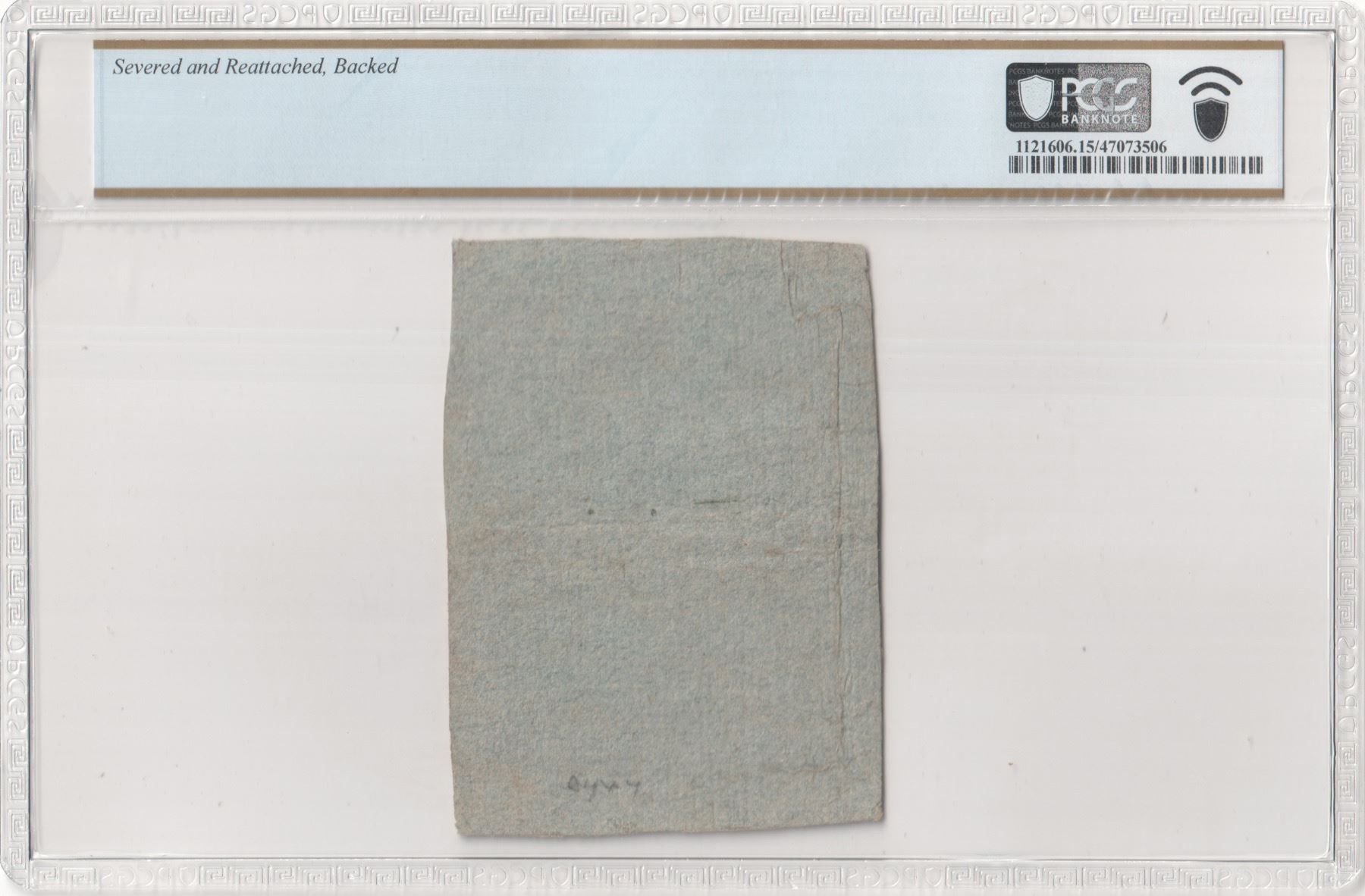 Description: Laid paper. Serial No. 1302. Signed by Bowler, Clarke, in red, and Cole. Printed by John Carter. Two-Sided, but backed by 19th-century blue paper, obscuring the verso print. 70mm by 96mm. An altogether pleasing type note. Trimmed a trifle tightly and faded somewhat, but still presenting a satisfactory overall appearance. “Boyd pencil code on back, ‘myxy,’ indicating $10.00 was paid long ago. Considered a rarity then and more so now,” noted the Ford writer. A grand note for the grade.