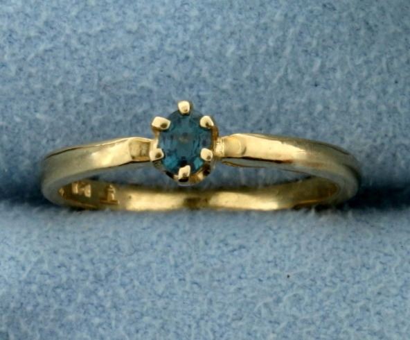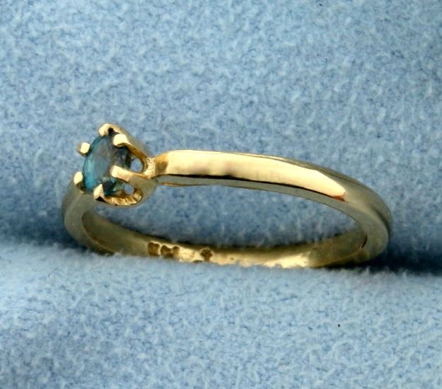 In 14K Yellow Gold. Contains a 3.5x3mm oval shaped Alexandrite that changes from green to purple depending on light source. Size 6. 2.0g