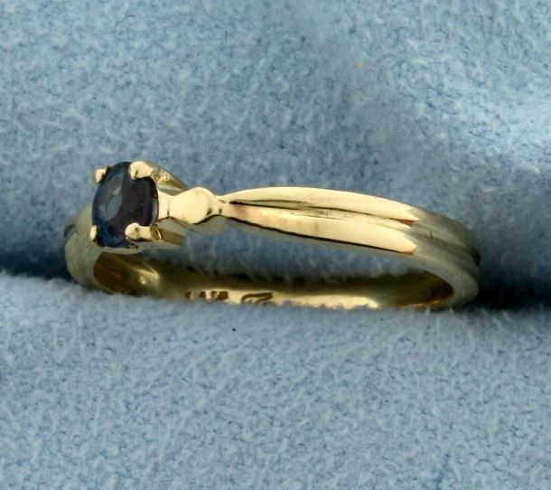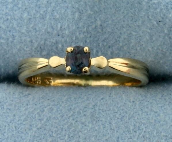 In 14K Yellow Gold. Contains a 4x3mm oval Alexandrite that changes from green to red depending on lighting. Size 6. 2.1g