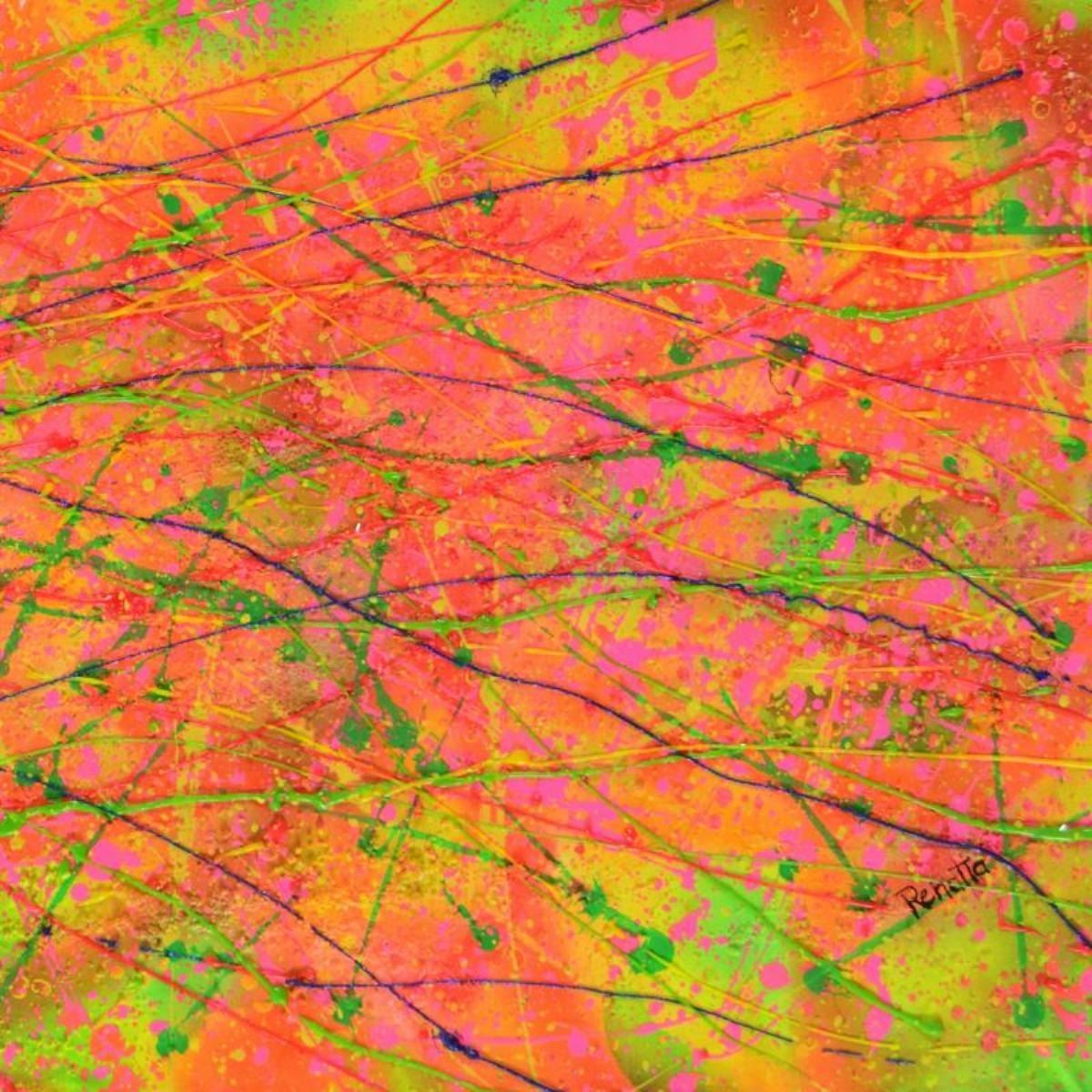 Color Party by Renatta Original. "Color Party" is an original mixed media acrylic painting with marble stone on canvas by Renatta, hand signed by the artist. Includes Certificate of Authenticity. Measures approx. 36" x 16" (image).