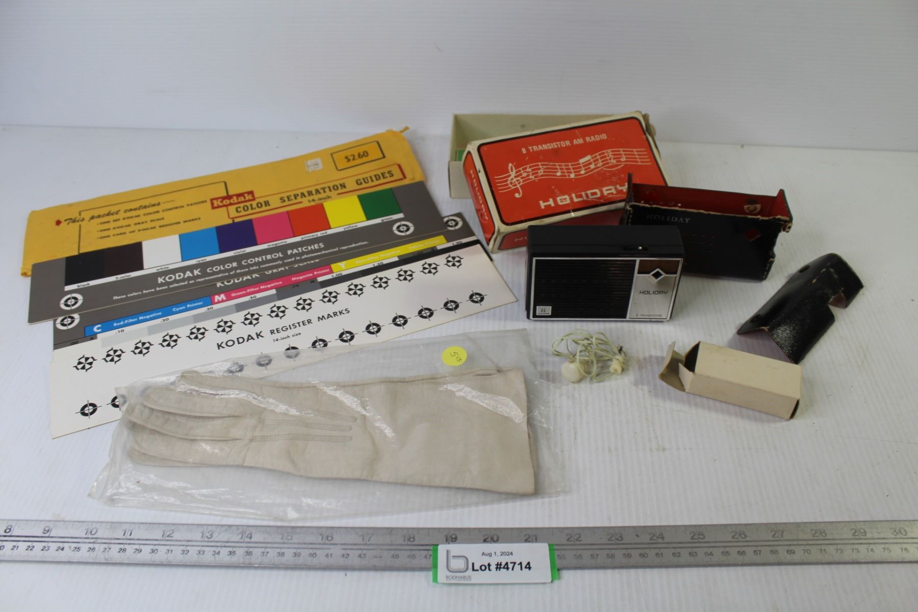 Color Separation Guides - Ladies Leather Gloves (looks like a size small) - Holiday Transistor Radio (case damaged - in original box)