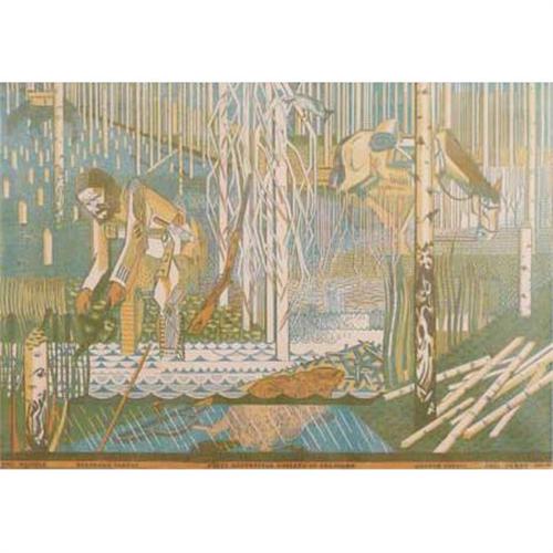 Colorado Historical Society color woodblock print "The Trapper" 12" x 17"