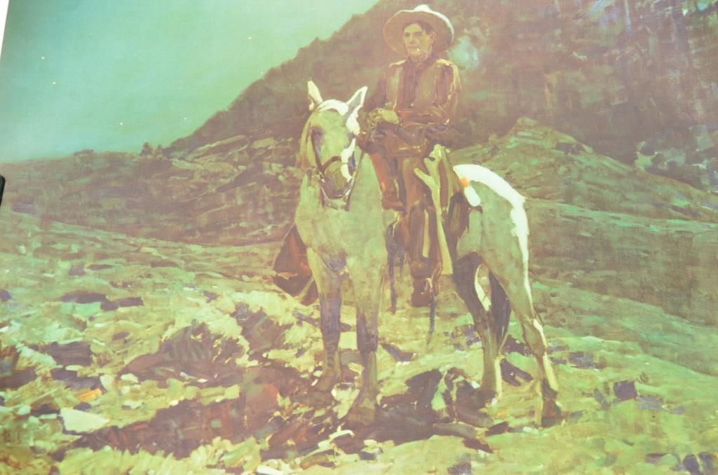 Color print entitled “Contemplating” by famed Western artist Frank Tenney Johnson, from the Johnson estate, approx. 15” x 19-1/2” showing a classic cowboy on his white horse at night; Johnson was born in 1874 and diedin 1939; he worked with most of the famous American artists of his time. This is a classic work of Johnson’s and ready for framing. Est.: $50-$75.