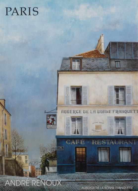 Color print of a Paris street scene by Andre Renoux, approx. 24” x 17”. Est.: $50-$75.