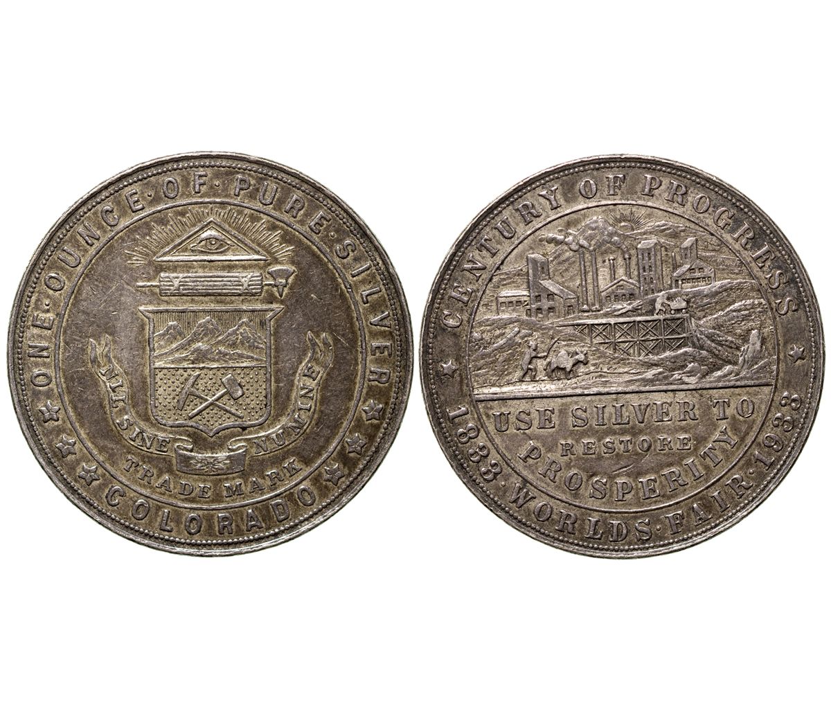 Century of Progress. 1833-1933 World`s Fair. Obverse "Use silver to restore prosperity." Reverse, "One ounce of pure silver" Silver 40mm VF-30. -60871