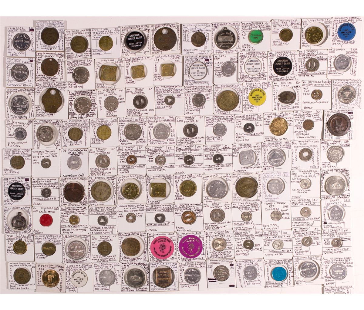 This diverse lot of over 100 tokens includes 38 transportation tokens and 71 modern tokens, medals, and other pieces. This is a great introductory lot for new collectors and dealers alike. -60952