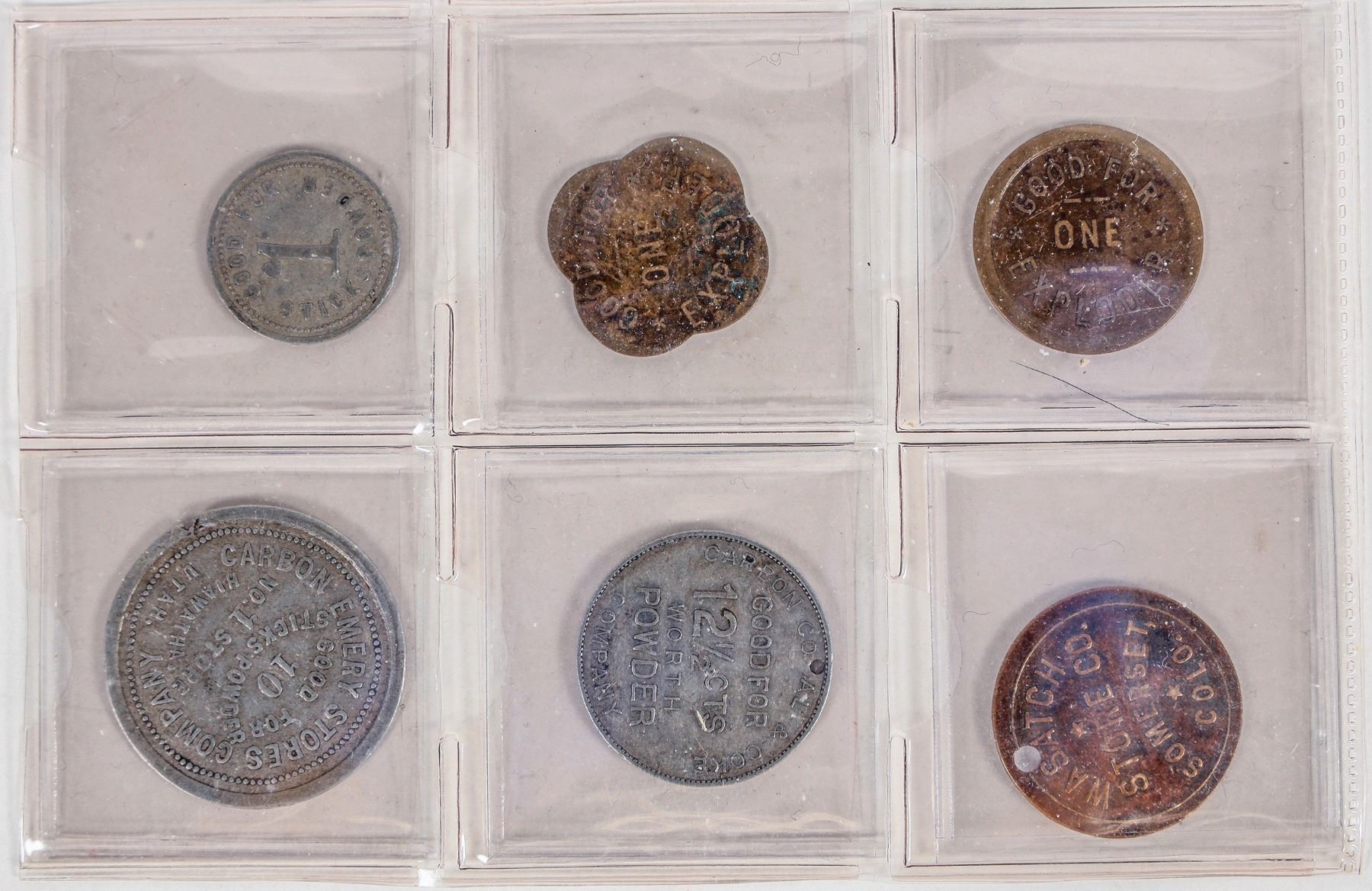 2) Wasatch Store Co. (Utah Fuel Co), Somerset, CO. Wasatch / Store Co / Somerset / Colo. // Good For / One Stick / of / Powder. Bronze, 31mm, small hole near edge, Schenkman CO W30a.