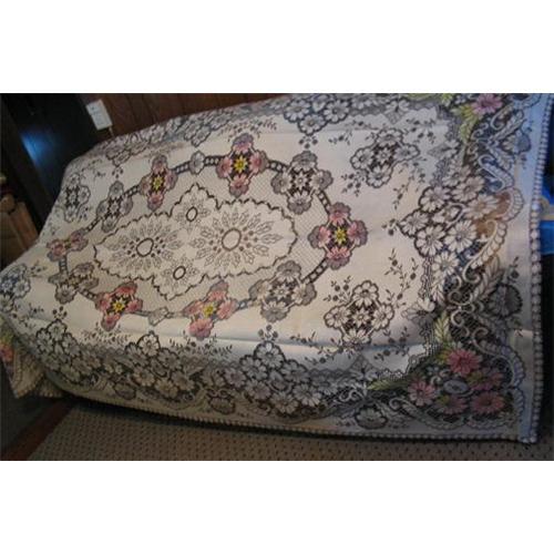 This beautiful colored floral lacy designed tablecloth was never used and still has the original tag attached that says: Made in Scotland. Machine made, 100% cotton it is in excellent condition without tears or pulls and measures 68 inches by 106 inches. The color shades of pink, yellow and orange really add an elegant look to it. A rare find in this condition and an addition to any table or Vintage Linens Collection. <BR>SH & Ins. will be quoted after orders placed. If you have questions please contact me and thank you for looking.